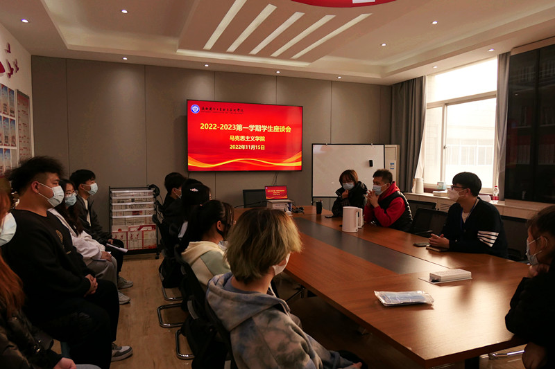 学期已经过半,为深入了解学生学习和教师教学情况,进一步提高教育教学质量,满足学生成长与发展需要,实现教学相长的良好效果,马克思主义学院于11月15日,在9-705会议室召开学生座谈会。会议邀请思法、概论、就业、心理教研室主任及不同专业不同年级的学生代表,由马克思主义学院办公室主任皮睿主持。
