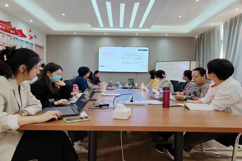 王老师展示完毕后,各位老师就每个知识点发表自己的看法并对课程内容进行补充,同时一起分享自己在备课过程中搜集到的相关案例、视频等资料,讨论气氛十分活跃。