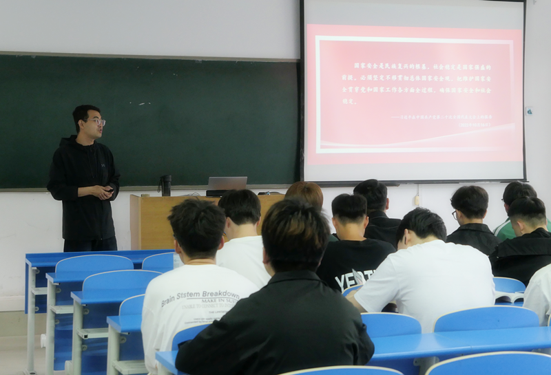 此次公开课由青年教师张贺主讲,主要从为什么说保证国家安全是头等大事、什么是总体国家安全观、怎样推进国家安全体系和能力现代化这三个方面准确全面地讲解了全面贯彻落实总体国家安全观的课程内容。在讲解过程中,张贺老师通过风趣的案例分析,从不同的角度对学生进行提问,通过引导学生严谨地辨析案例所包含的价值内容,开展正确的价值引导。在课堂学习中,学生精神饱满,认真思考,积极回答问题,表现出强烈的求知欲。
