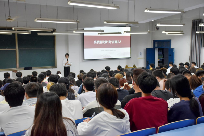 在本次宣讲活动中,胡可主要围绕“坚持制度自信 发展全过程人民民主”和“高质量发展‘高’在哪儿”两个主题,面向宣讲对象进行了理论阐释和案例解析,在“坚持制度自信 发展全过程人民民主”主题中,宣讲以“豆选”案例引入,从全过程人民民主是全体人民的民主、是人民全过程参与的民主、是“最广泛”“最真实”“最管用”的民主等方面进行了重点讲解,生动讲述了我国全过程人民民主的具体实践,展现了中国特色社会主义民主制度的优越性;在“高质量发展‘高’在哪儿”主题中,宣讲从“一粒米中的硬科技”切入,生动展示了我国农业发展的现状;以“高铁与绿皮火车你选择哪一个”为话题,与现场同学进行互动,引出欠发达地区如何因地制宜走出适合本地区实际的发展之路,进而阐释高质量发展强调的是质量,而非速度,强调的是发展而非增长,回答高质量发展“高”在哪儿。