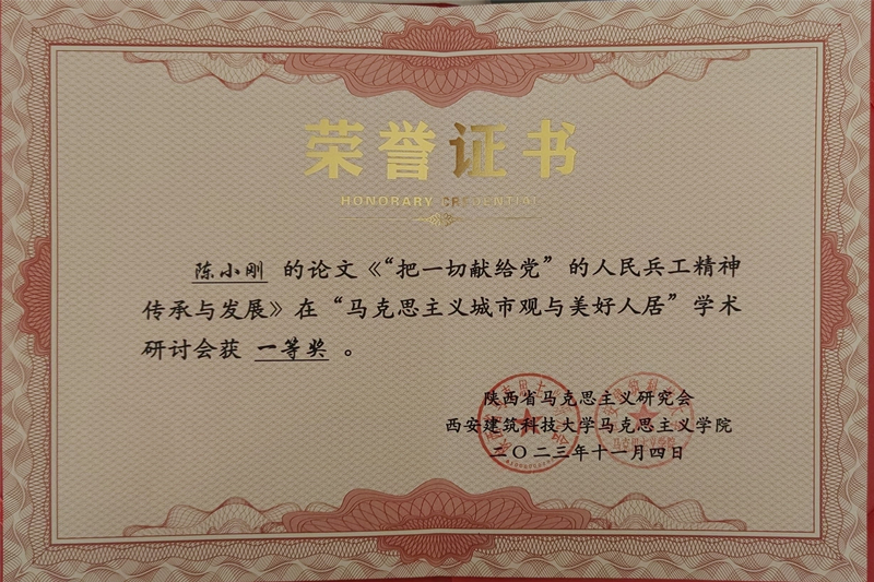 陈小刚副教授提交的学术论文《“把一切献给党”的人民兵工精神传承与发展》,受到中国社会科学院、西安建筑科技大学等单位专家学者积极肯定,认为军工文化蕴涵的工匠精神在人民城市建设中具有重要的价值。该文章获得“马克思主义城市观与美好人居”学术研讨会优秀论文“一等奖”。