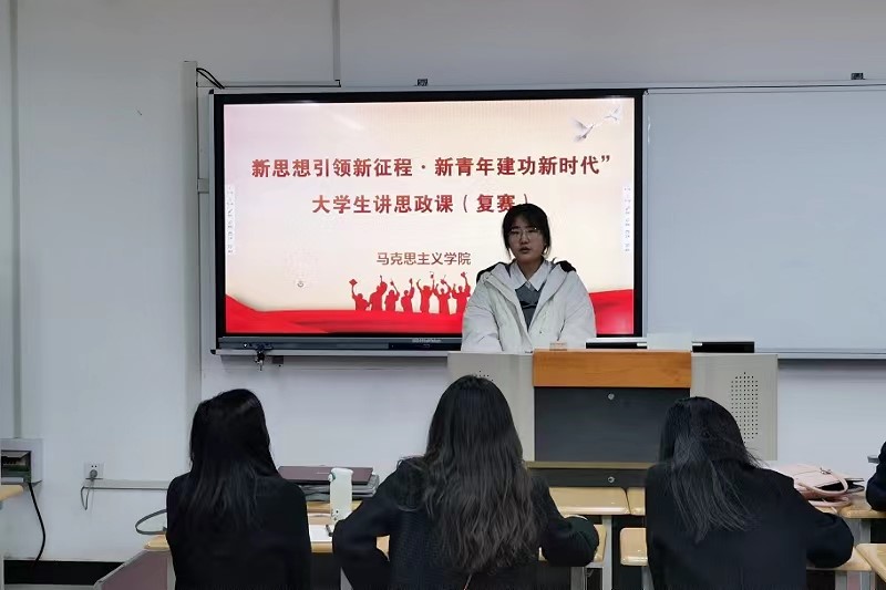 为坚持不懈用习近平新时代中国特色社会主义思想铸魂育人,积极构建“大思政课”格局,拓展大学生参与思政课实践教学途径,11月7日,马克思主义学院在教4—129、132教室举办“新思想引领新征程·新青年建功新时代”大学生讲思政课比赛复赛,思法教研室专兼职老师担任比赛评委。