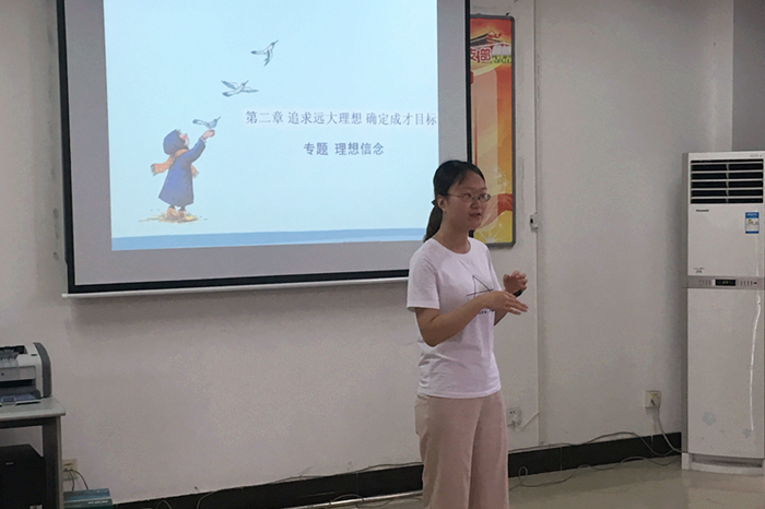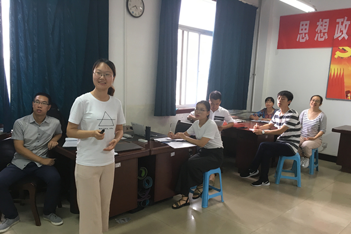 此次备课会由青年教师王晶主讲,她根据《思想道德修养与法律基础》课程2018年修订版教材知识点,结合党的十九大精神、习近平新时代中国特色社会主义思想和2018年“两会”精神,从备内容、备学生、备教法三个方面以《理想信念》专题为例,进行了说课讲解。