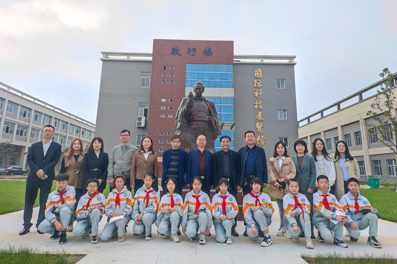 为贯彻落实习近平总书记在学校思想政治理论课教师座谈上的讲话精神,推进“大中小”思政课一体化建设,推动思政课建设内涵式发展,我校马克思主义学院与鄠邑区教科局前期多次进行了深入的交流和座谈,就建设方案和模式达成了共识。2021年10月13日,马克思主义学院依托我校军工文化红色资源,为65名鄠邑区人民路小学学生开展了一场生动的爱国主义教育实践活动,西安市鄠邑区教科局党委委员仝景锋、陕西省鄠邑教师进修学校校长贺明涛、副校长何瑜、我校党委副书记杨聪、马院院长吴娟以及部分思政课教师参加了本次活动。