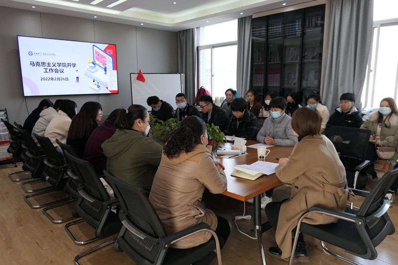 开学在即,为了保障新学期教学工作顺利开展,做好疫情防控下的教学工作与管理服务工作,2022年2月26日上午,马克思主义学院在9-705召开2021-2022第二学期工作安排会议,会议由马克思主义学院院长吴娟主持,学院全体教师参加。