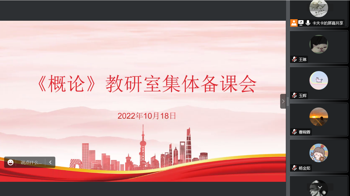 10月18日下午,马克思主义学院概论教研室召开了集体备课会,会议由教研室主任张红斌主持,教研室全体教师参加了此次线上会议。