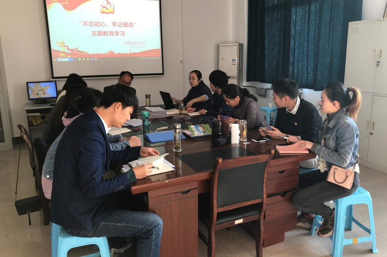 2019年10月17日下午,必威app安卓版无弹窗党委学团思政党支部在思政部办公室开展“不忘初心 牢记使命”主题学习,必威app安卓版无弹窗党委书记沈惠以及全体支部党员参加,会议由支部书记张静主持。