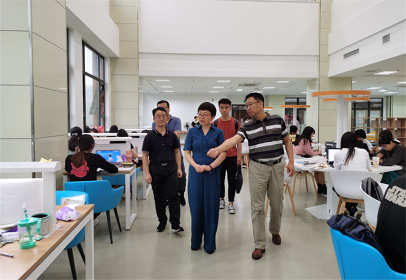 首先考察组一行人来到欧亚学院图书馆,在图文信息中心主任罗征的陪同下,实地参观了人文社科本馆、学科分馆和社区分馆等馆舍,考察了文献信息服务新模式以及其运行情况。