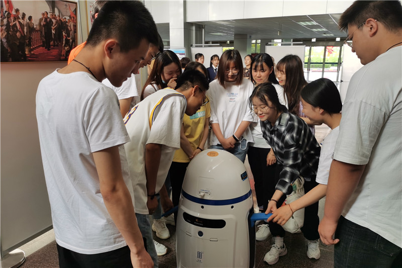 为方便读者更好地理解和欣赏每一幅作品,本次展览在每幅画作下面均配有二维码,扫码即可聆听主播精讲,为每位参观者营造了可看可听、视听相结合的欣赏观展环境。同时,为增加观展趣味性,活动现场还专门配备了引导提醒、咨询参考、交流互动等多功能机器人“叮小胖”为大家答疑解惑,现场气氛热烈,互动不断。