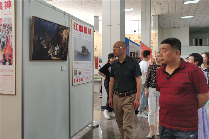 副校长刘少阳也莅临展览现场,与师生一同观展。他指出将艺术画作与党史故事结合起来效果很好,并希望能够更细致的挖掘党史故事,将建党历史脉络梳理的更完整,才能对广大读者起到很好的教育作用。