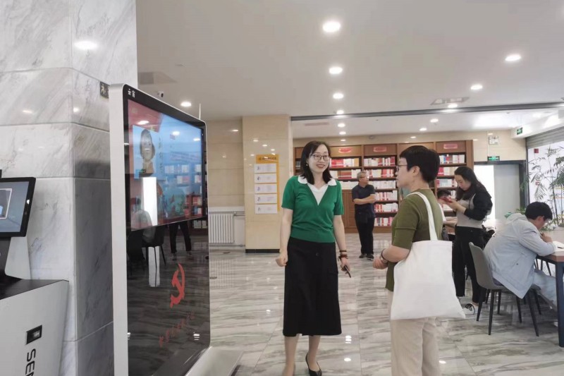 首先,明德学院强馆长带领考察组参观了共享学习区、红色专题书屋、读者研讨空间和书库等区域。之后,双方就图书馆电子资源的建设、纸质资源规划及教学评估筹备等方面进行了深入交流,随后,针对电子图书建设情况,信息技术中心主任于启明对考察组进行了实地演示。