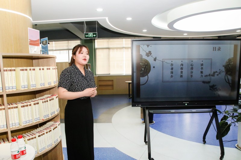 教师读书分享阶段,来自化学工程学院的肖阳老师分享了《我与地坛》,她从作者简介、内容赏析、心得体会和读书魅力四个方面给大家做了展示,过程中她结合自身阅读经历、学生思想教育工作和书中人物的感悟,给大家带来一场精彩分享,最后她希望大家在这个信息时代,要养成阅读的习惯,保持独立思考能力。