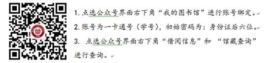 三、假期期间校外如需查询借阅信息和馆藏资源,请关注图书馆微信公众号: