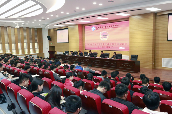 为进一步落实党的十九大精神,在我校广大团员青年中着力培养一批用马克思主义中国化最新成果武装的青年马克思主义者,提高学生综合素质与核心竞争能力,引导学生成长为以马克思主义中国化的最新成果武装的中国特色社会主义事业合格建设者和接班人,学校第五期“青年马克思主义者培养工程”大学生骨干培训班于2019年4月10日在教四报告厅顺利开班。学校党委书记张卫平、副院长杨聪出席本次开班典礼,学工部、必威app安卓版无弹窗党委、团委负责人、各系团总支书记及青马班157名学员参加典礼。典礼由团委书记易楠主持。