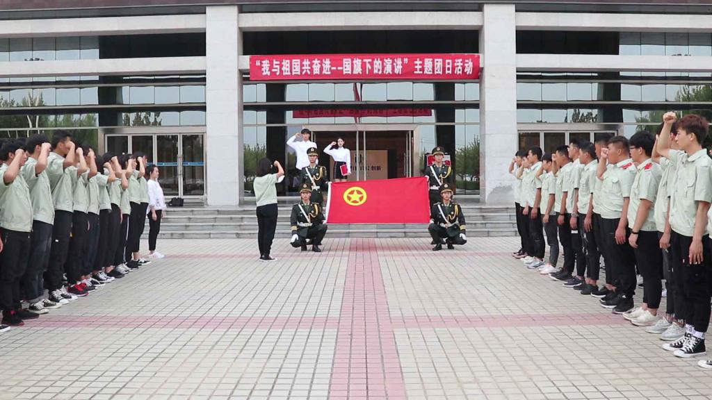 为隆重庆祝中华人民共和国成立70周年,大力唱响礼赞新中国、奋进新时代的青春主旋律,9月30日,我校网络3196、造价3198、建筑3191、建筑3192、建筑3193班辅导员范爽和石渔老师带领全体团员青年在北校区图书馆广场举行“我与祖国共奋进——国旗下的演讲”主题团日活动。