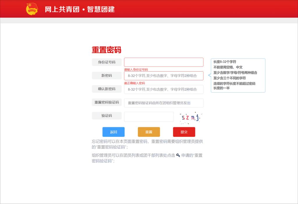 若忘记密码,请联系高中所在团支部管理员进行密码重置。