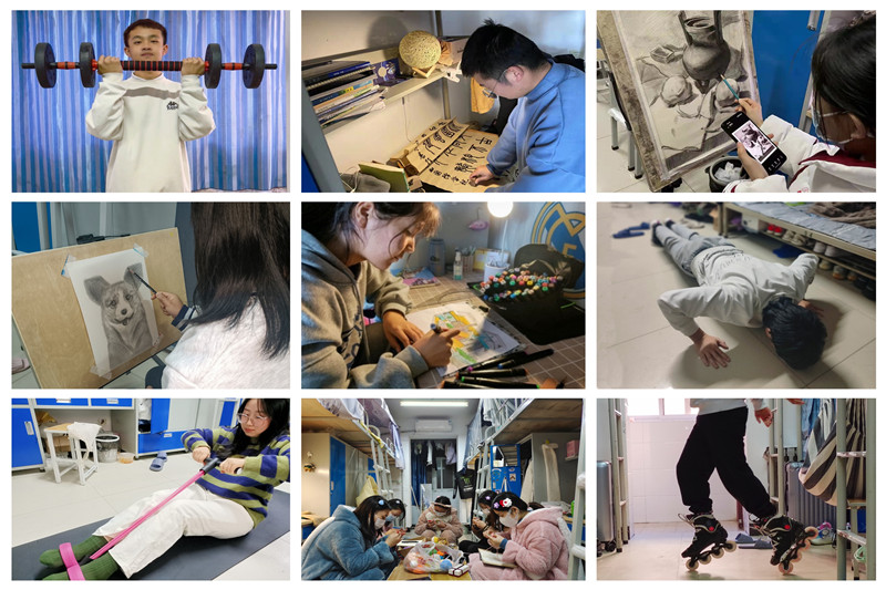 随着疫情防控等级的进一步提升,为打赢这场没有硝烟的抗“疫”战争,我校学生严格执行疫情防控要求,积极调整身心状态,保持饮食和作息规律,加强身体锻炼。在宿舍封闭管理期间,不仅认真投身线上网课的学习之中,还在封闭期间解锁了“十八般武艺”,让原本枯燥的战“疫”生活变得多姿多彩。
