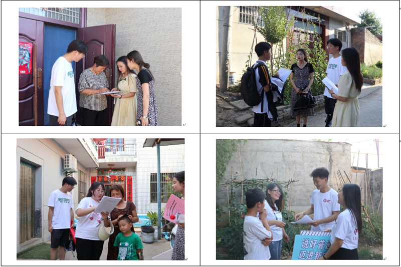 今年暑假,由校团委组建,李月娇、寇晓晶、王玉辉三位老师指导的“推普助力乡村振兴服务队”于7月10日—8月25日前往鄠邑区东马营村、鄠邑区麦张寨村以及团队成员自己的家乡,分别开展以“百年青春推普行,齐心协力助振兴”“传承经典启智润心,‘乡’约盛夏青春同行”“返家乡——推普助力乡村振兴”为主题的社会实践服务活动。