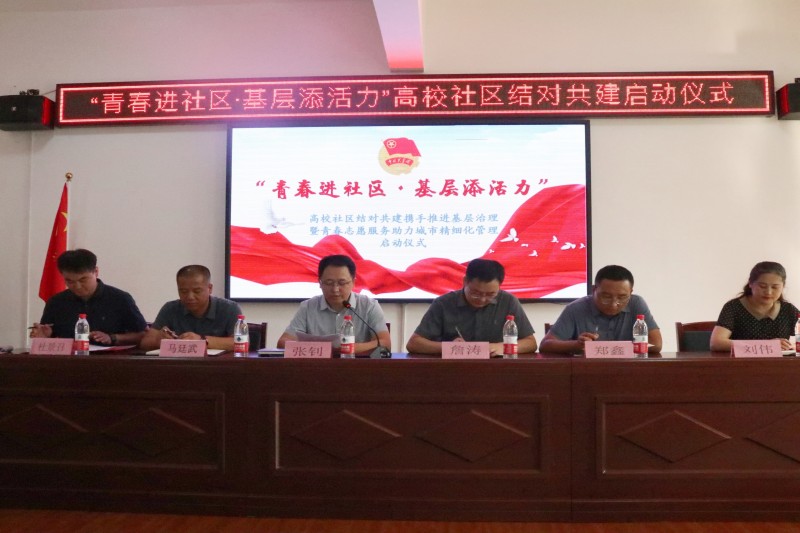 校团委书记张钊讲话表示社区是重要的育人阵地,学校希望通过大学生社区实践计划,引导大学生了解国情、社情,增长见识,统筹校内校外共青团力量,组织大学生走进社会基层,了解社会实际、服务人民群众、增强时代责任、提高社会化能力,助力城市基层社会治理。