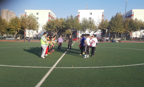 11月5日下午,由机电学院党总支书记殷兴光、宣传处处长杨建伟等老师组成的教师代表队和机电工程学院学生代表队在北校区足球场上进行了一场师生足球友谊赛。