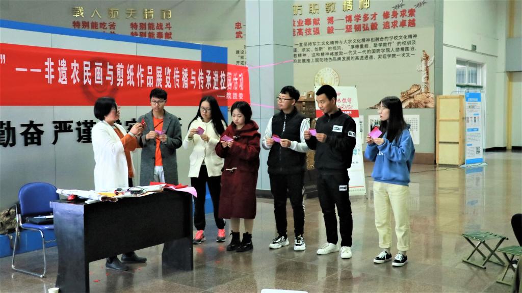 本次活动的成功开展,让我校师生深刻的认识到每幅农民画和剪纸作品是一代代民间艺术家坚守工匠精神传承发扬下来的,当代大学生要积极传播与传承非物质文化遗产,让民族文化在国防学院生根发芽,生生不息。