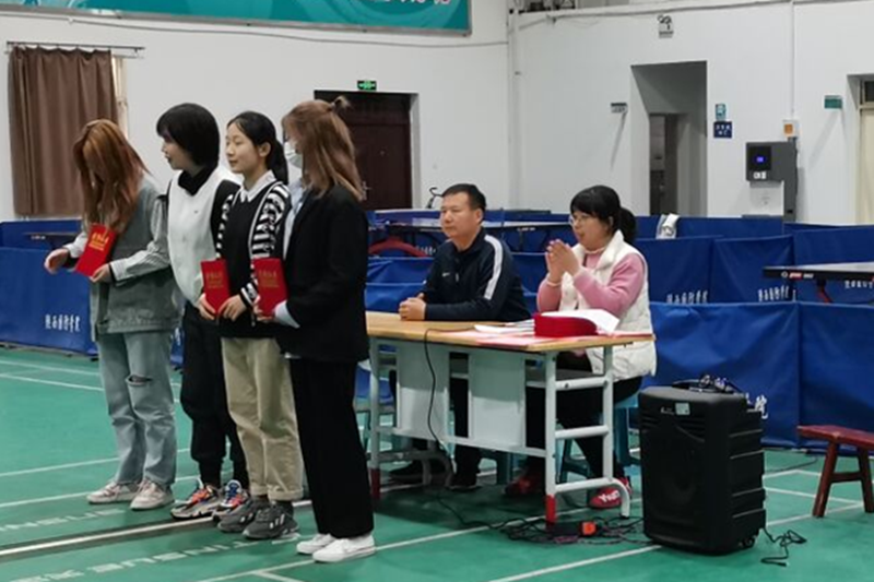 4月6日举行的是隆重的颁奖仪式。获得团体赛第一名的是计算机学院,个人赛男子组前三名的分别是丁康康、王新智、杨哲;个人赛女子组前三名则依次被王高轩、席果果、罗晴夺得.我校军事体育部部长王茂利老师,体育部主任李娟老师、裁判组组长李崇敏老师等亲临现场为获奖队员及团体颁奖,颁奖仪式由李崇敏老师主持。他们对赛事举行过程中的各项组织工作给予了充分肯定,对各参赛球队在比赛中体现出来的积极进取健康向上的精神给予了高度评价,谈到本次举办的比赛时,一致认为“比赛打得精彩,打得激烈,很好的体现了国防学生积极的精神风貌和斗志!赛出风格,赛出水平!