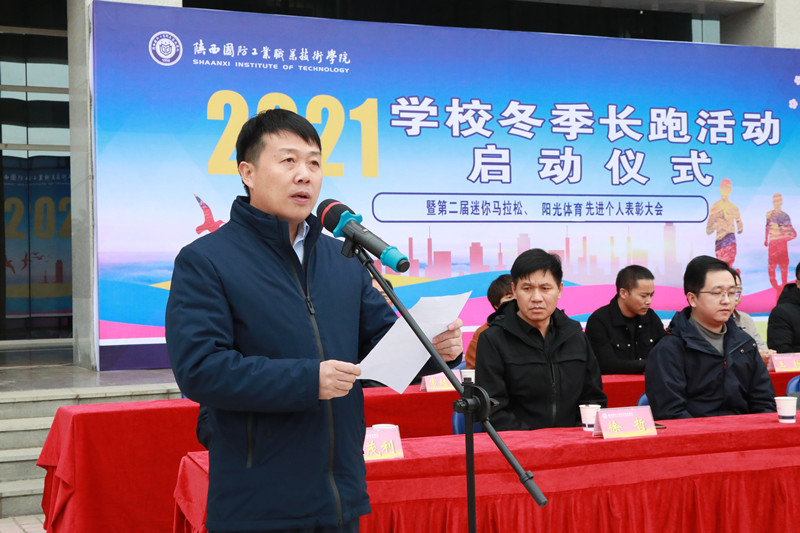 为全面贯彻落实国家体育总局印发《“十四五”体育发展规划》、教育部、国家体育总局、共青团中央联合下发的《关于开展全国亿万学生阳光体育冬季长跑活动的通知》精神以及两办印发的《关于全面加强和改进新时代学校体育工作的意见》文件精神,我校于12月7日下午,在北校区图书馆前举行我校成功举办2021年校园冬季长跑活动启动仪式暨第二届校园迷你马拉松比赛、“阳光体育运动”先进个人表彰大会。校党委书记张卫平,校长刘敏涵,党委副书记杨聪、党委副书记、纪委书记王玉,副校长刘少阳及相关院部负责人及万余名师生参加开幕式。开幕式由军事体育部部长王茂利主持。