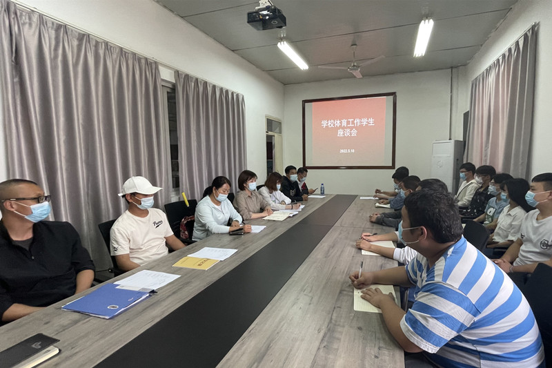 为深入贯彻落实中共中央、国务院《中国教育现代化2035》、《国务院关于实施健康中国行动的意见》文件精神,努力实现建成教育强国的新目标,进一步提高学校立德树人质量和校园健康水平,完善德智体美劳全面培养的教育体系,提高学生身心健康水平,5月10日下午,军事体育部召开本学期学校体育工作学生座谈会,参加会议的有军事体育部办公室主任李娟、骨干教师、教师代表以及10个二级学院学生体育部部长,会议由军事体育部办公室主任李娟主持。