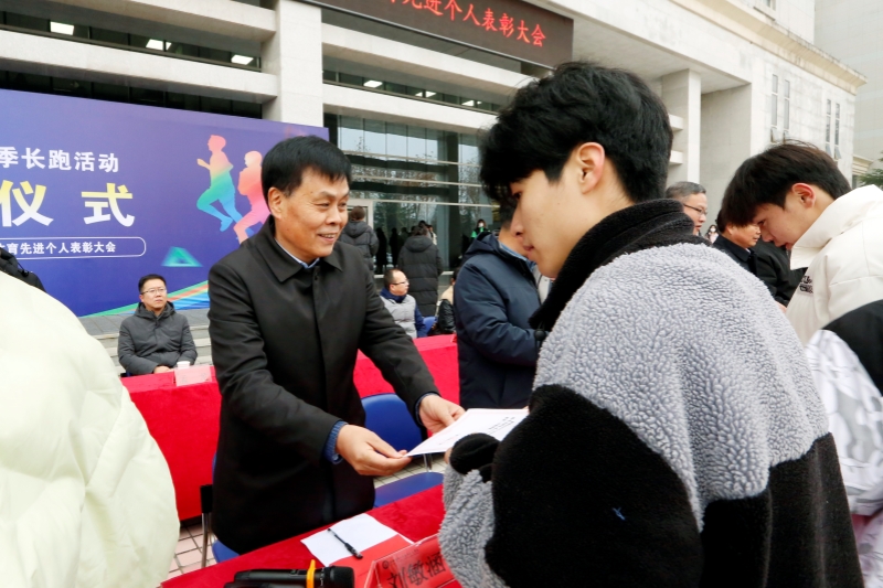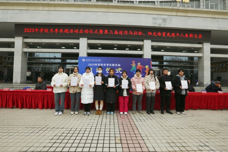 为贯彻落实中共中央办公厅、国务院办公厅印发的《关于全面加强和改进新时代学校体育工作的意见》文件精神,将习近平总书记在党的二十大报告中提出的“要坚持健康第一的教育理念,加强学校体育工作”指示精神落到实处,进一步加强体育工作,增强学生体质,我校于12月12日下午,我校在北校区图书馆前举行了2023年学校冬季长跑活动启动仪式暨第三届校园马拉松比赛、阳光体育运动先进个人表彰大会。校长刘敏涵,党委副书记杨聪、副校长孟繁增出席活动。学校党政办、宣传部、必威app安卓版无弹窗部、团委、教务处、后勤处、保卫处及各分院负责人出席了本次大会。大会由军事体育部部长王茂利主持。