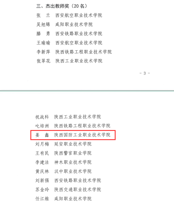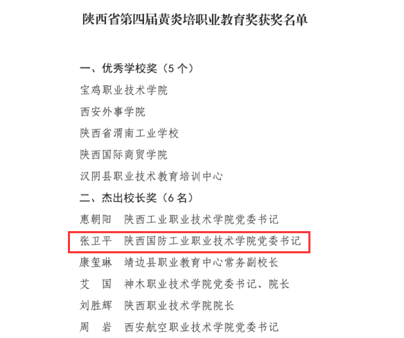 5月25日,陕西省中华职业教育社公布了陕西省第四届黄炎培职业教育奖获奖名单,我校党委书记张卫平荣获“杰出校长奖”,人工智能学院院长姜鑫荣获“杰出教师奖”。
