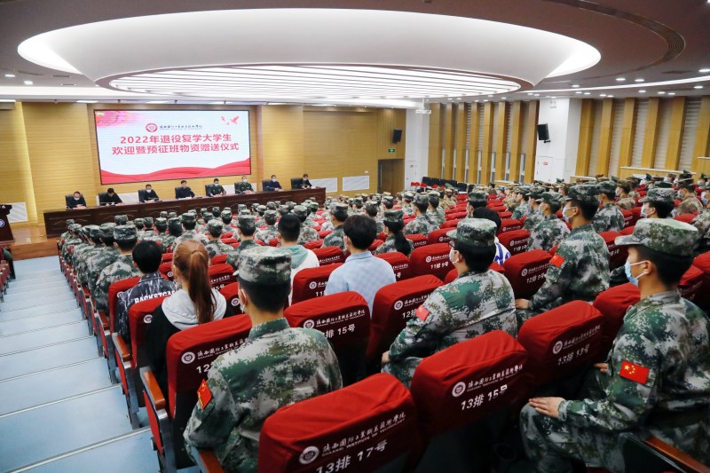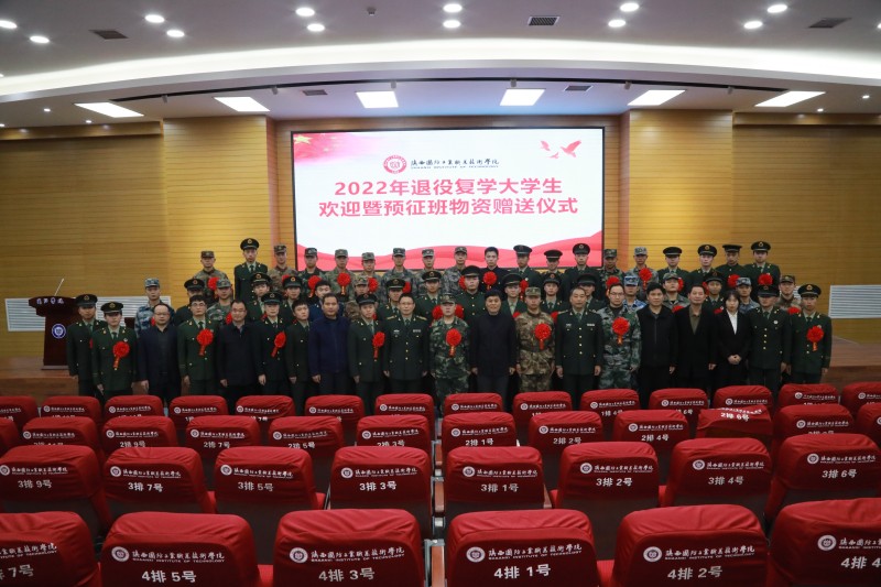 为切实加强新时代大学生国防教育,高质量推动退役大学生服务工作和大学生应征入伍工作。11月10日下午,我校在北校区学术报告厅举行2022年退役复学大学生返校欢迎暨预征班物资赠送仪式。我校校长刘敏涵、副校长张永军,鄠邑区武装部部长李刚、鄠邑区武装部政委韩元涛,余下街道党委书记夏智宏、余下街道武装部部长段永战,我校武装部、学工部相关负责人出席会议,全体退役复学大学生、军魂学社成员和预征班学员参加会议。会议由我校武装部部长徐哲主持。