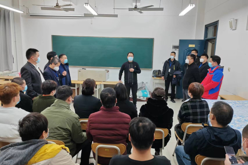 11月27日20:00,副校长张永军带队慰问封闭住校坚守岗位的物业、保洁、水电、食堂员工。后勤处处长王朱劳、副处长任红星,后勤处相关人员陪同慰问。