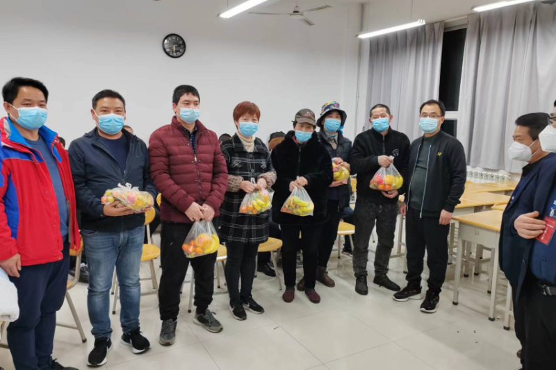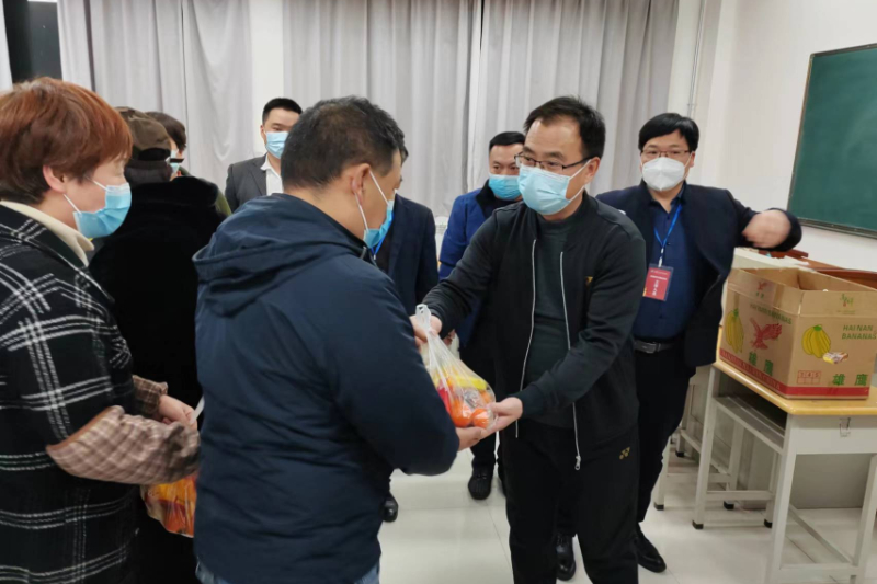 张永军副校长一行来到员工住宿区域,仔细询问员工们近期的工作、住宿等情况,了解大家生活上遇到的困难,给大家送来了时令水果等慰问品。