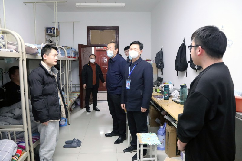 党委书记张卫平深入学生宿舍与同学们进行亲切交谈,耐心细致地向同学们介绍了当前省内和学校周边疫情防控的严峻形势,并向学生解读了国家疫情防控管理要求,传达了学校领导和老师们对同学们的关心和关爱,鼓励学生集中精力抓好学习、按时作息、增强体质,共同筑牢防线,齐心协力共克时艰。