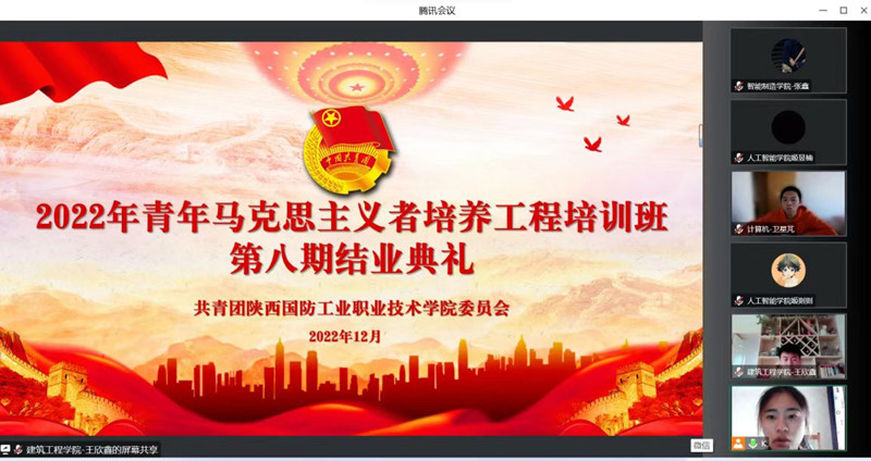 为引导、激发和推动大学生骨干自觉深入学习研究马克思主义,科学培养具有忠诚的政治品格、浓厚的家国情怀、扎实的理论功底和突出的能力素质的青年政治骨干,今年6月起,校团委组织第八期“青马工程”165名学员开展了为期数月的线上线下培训和实践锻炼活动。为全面总结培训成果,表彰优秀学院,12月14日下午,校团委举办了2022年“青马工程”培训班线上结业仪式。