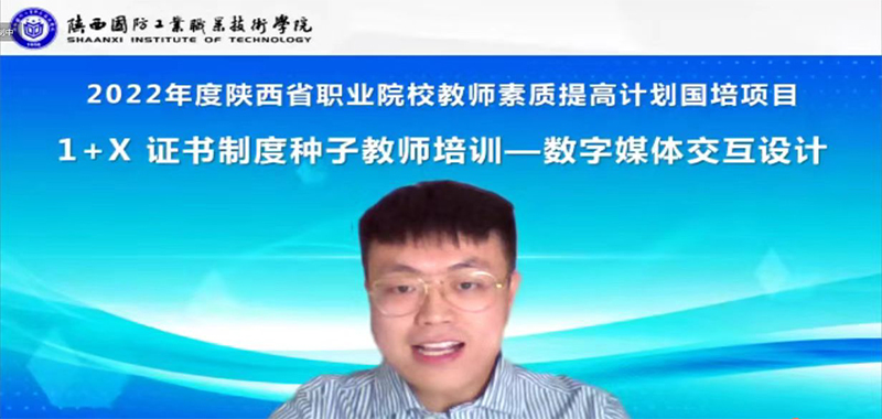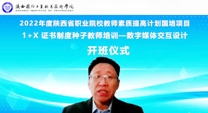 12月20日上午,2022年度陕西省职业院校教师素质提高计划国培项目——1+X 证书制度种子教师培训(数字媒体交互设计)在我校顺利开班。