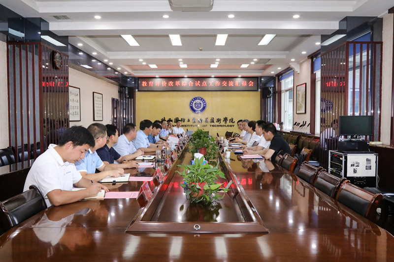 副校长张永军就我校的教育评价改革工作总体情况;学校综合试点项目进展情况;构建职业教育“双师型”教师认定、聘用、考核机制项目等三个方面进行了详细汇报。