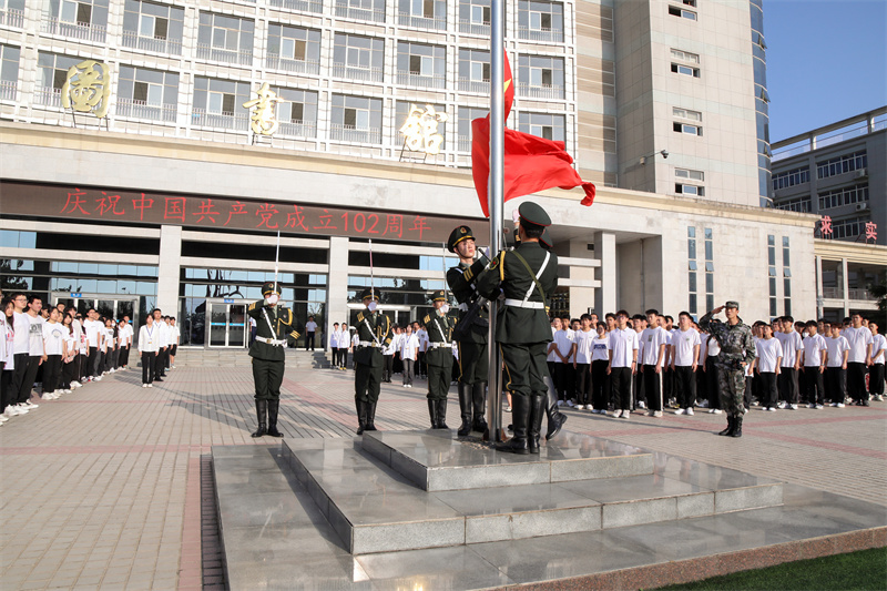 6月30日清晨,我校在北校区图书馆楼前隆重举行了庆祝中国共产党成立102周年升国旗仪式。全体校领导、师生代表参加了升旗仪式。升国旗仪式由人工智能学院党总支书记张双琦主持。