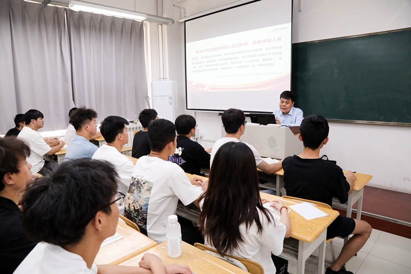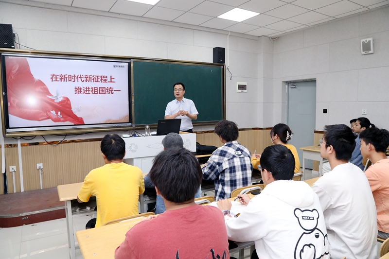 校长刘敏涵,分别以“在新时代新征程上推进祖国统一”“脆弱复苏的世界经济”为题,为汽车工程学院(新汽3221班)学生讲授了形势与政策课,他以台湾问题引入,围绕“解决台湾问题、实现祖国完全统一”,从“接续奋斗的光辉历程”“不可阻挡的统一大势”“与时俱进的行动纲领”三个方面进行了讲授,帮助学生准确理解新时代中国共产党解决台湾问题的总体方略的深刻内涵,正确认识到当前我们比历史上任何时期都更接近、更有信心和能力实现祖国完全统一的目标。