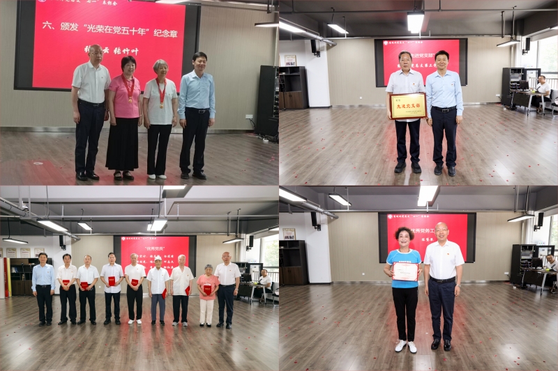 刘少阳带领全体党员一起重温入党誓词,通过宣誓,全体党员更加坚定了共产主义信念,强化了责任感、使命感,进一步增强了党组织的凝聚力和战斗力。张卫平、刘少阳向两位同志颁发了“光荣在党五十年”纪念章;为1个“先进党支部”、9名“优秀党员”和1名“优秀党务工作者”颁发了奖牌和证书。党委组织部副部长程凯宣读了《中共betway必威中文正版委员会关于表彰2023年度先进党组织、优秀共产党员和优秀党务工作者的决定》。
