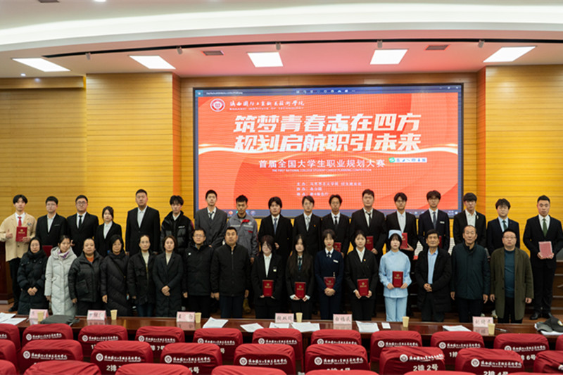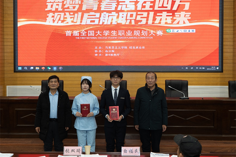 为贯彻落实党中央、国务院关于高校毕业生就业工作的决策部署,加强学生生涯教育和就业指导,增强学生生涯规划意识,近期,首届全国大学生职业规划大赛校级决赛在我校教4报告厅举行。此次比赛分为成长赛道、就业赛道两个赛道。活动开展以来,学校高度重视,精心组织,大力宣传,报名总数达3000 余人。经过各院部选拔、复赛,来自8个学院的20名选手脱颖而出,参加了校级决赛。马克思主义学院院长、各分院书记和招就处负责人担任决赛评委,职业生涯规划与就业指导教研室专兼职老师观看了比赛。