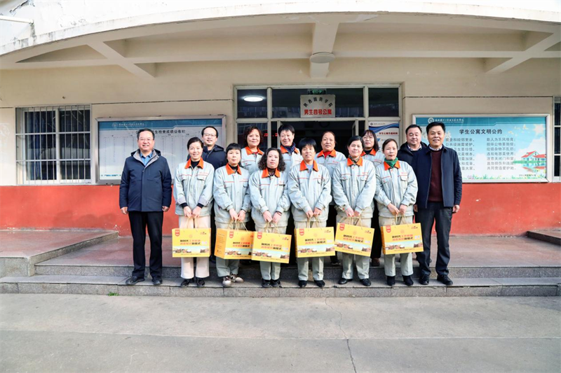 玉兔呈祥辞旧岁,金龙腾飞迎春来。2月10日上午,农历大年初一,校长刘敏涵、党委副书记杨聪带队走访慰问了春节期间坚守在工作岗位的一线教职员工,代表学校送去新春祝福。党政办公室、工会、学生处、保卫处、后勤处、离退处等部门负责人参加慰问。
