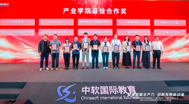 自全国各省市160多所高校的300多位校领导、专家以及华为、长城、中智国培、微纳研究院等20余家生态合作伙伴共同参会并举行产业学院签约仪式我校获得产业学院最佳合作奖。在大会主论坛环节中,哈尔滨工业大学原副校长、中国计算机学会CCF会士、教育部高校软件工程专业教学指导委员会副主任、教育部高校教学信息化与教学方法创新指导委员会副主任徐晓飞教授,国家教育行政学院学术委员会主任、职业教育研究中心主任邢晖等分别作主题报告分享,让与会嘉宾深刻认识到新质生产力的形成与发展,其核心在于科技创新与教育的发展,需要校企进一步深化探讨国产算力如何助力科学研究、校园数字化转型、产教融合,激发新质生产力的潜在活力。