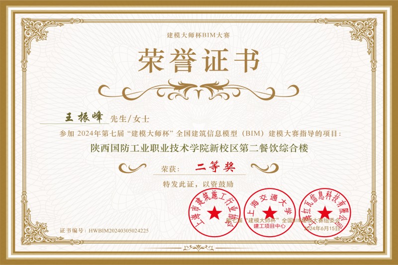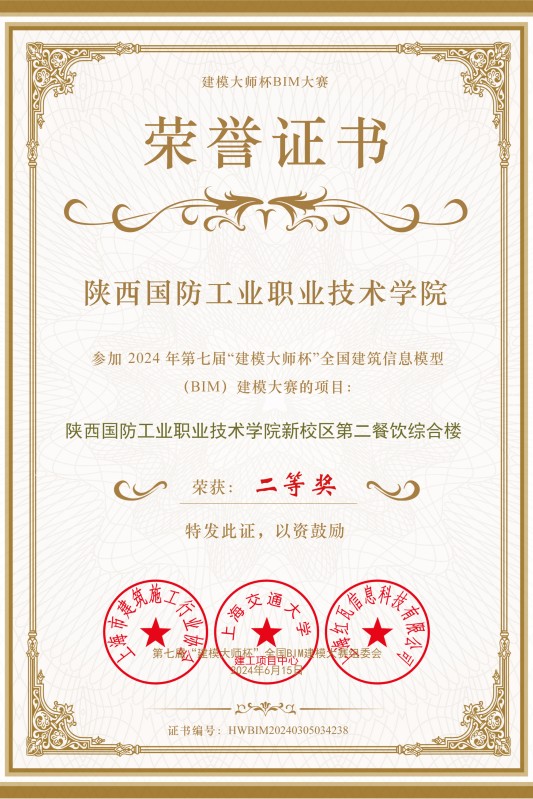 6月11日,2024年第七届“建模大师杯”全国BIM建模大赛院校组赛项已经圆满完成。来自全国各高校的462组团队汇聚一堂,施展才华,竞技比拼,最终决出特等奖4个、一等奖12个、二等奖36个、三等奖108个。我校最终荣获院校组二等奖1项,三等奖1项。