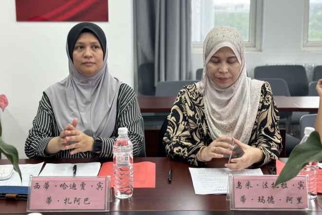 乌米·法扎拉详细介绍了马来西亚玻璃市大学的办学历史及现状,对于我校办学特色、国际交流等方面表示赞赏。西蒂·哈迪贾介绍了玻璃市大学电子工程与技术学院的发展情况。她表示希望通过此次访问,能够促进两校在国际化人才培养等方面取得更多成果。