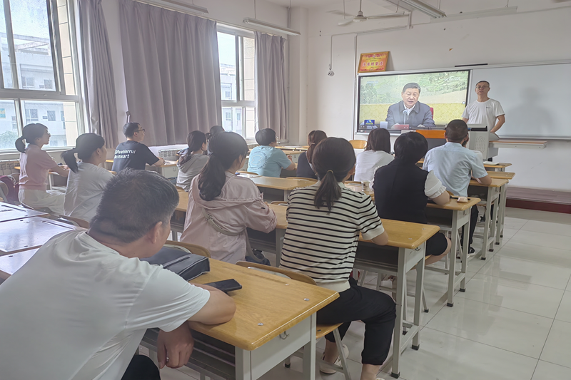 会议分五个阶段进行,第一阶段:教职工政治理论学习。常继红带领全体教职工观看了视频《同心共铸——习近平总书记赴青海、宁夏考察调研纪行》和《习近平总书记在中共中央政治局第十五次集体学习时的重要讲话精神》。通过观看和学习,全体教职工进一步加深了对习近平总书记重要讲话精神和指示的理解,增强了政治理论素养,提高了政治觉悟,为后续工作的开展奠定了坚实的思想基础。