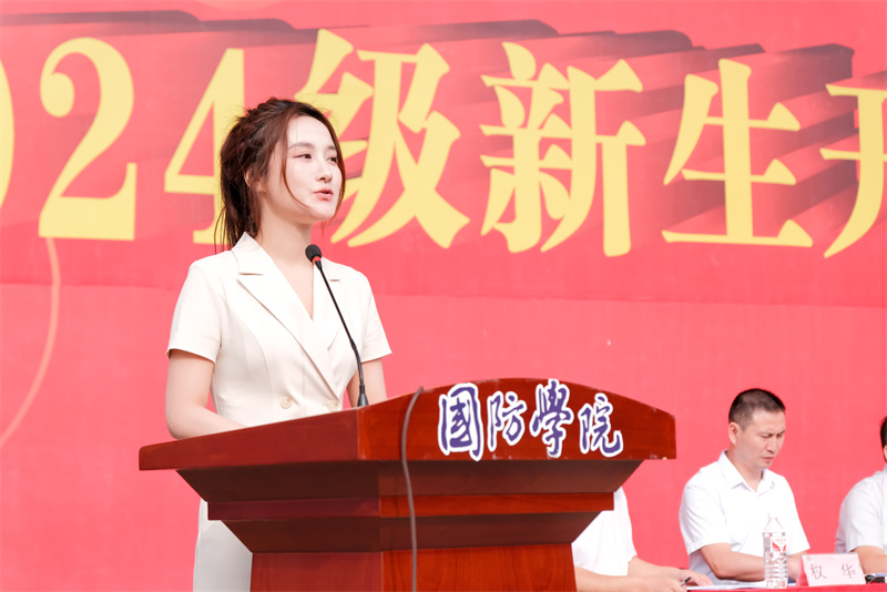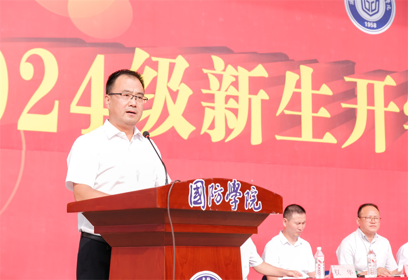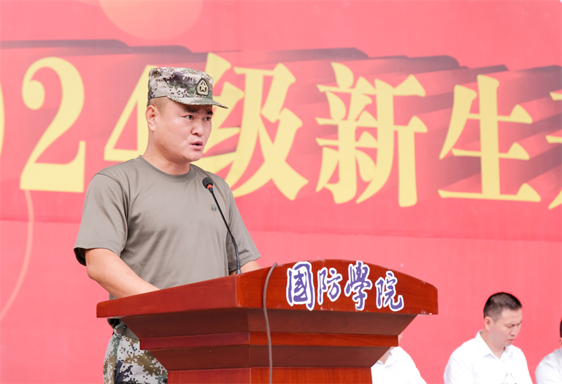 党委副书记杨聪致辞。他提出,军训作为大学生活的第一课,其意义远不止于简单的体能训练,它是一次心灵的洗礼,一次精神的磨砺,更是一次自我超越的旅程。同时,他提出三点希望:第一要坚定理想信念,心怀家国。第二,磨砺坚强意志,塑造坚韧品质。第三,强化团队精神,促进集体荣誉。