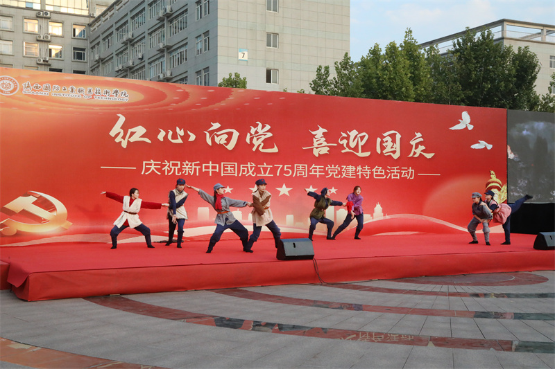活动在庄严的国歌声中拉开序幕。电子信息学院党总支的朗诵《国歌响起》、艺术与设计学院党总支的舞蹈《八女投江》充分展现了莘莘学子青春心向党、建功新时代的坚定信念;计算机与软件学院党总支的舞蹈《万疆》、经济管理学院党总支师生民族歌舞《美丽中国》尽显中华传统文化的魅力;汽车工程学院党总支的舞蹈《我和我的祖国》,离退休党总支的朗诵《那是我的祖国》、舞蹈《五星红旗》表达了师生拳拳爱国之心和献礼新中国七十五华诞的喜悦之情。