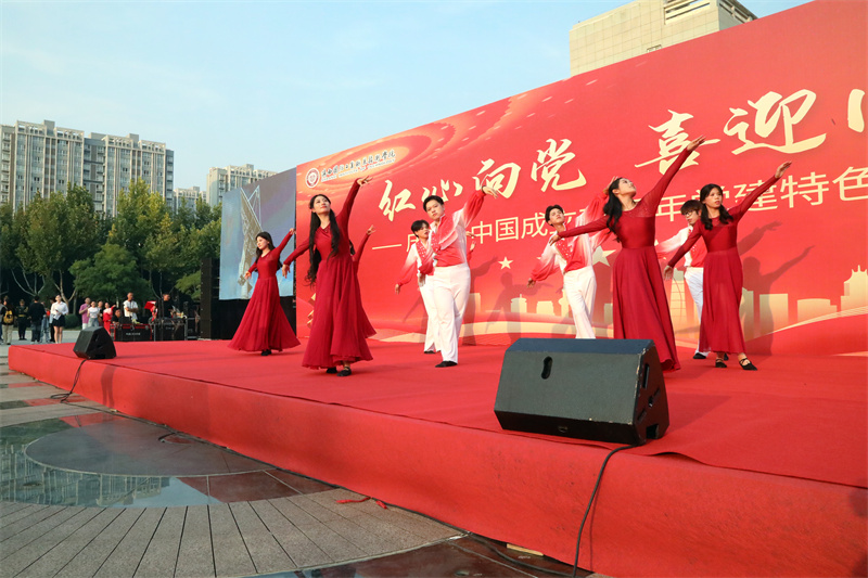 9月27日下午,由党委组织部、党委宣传部、校工会主办,必威app安卓版无弹窗党委、校团委及各基层党总支承办的“红心向党 喜迎国庆”——庆祝新中国成立75周年党建特色活动在北校区砺剑广场举行。校党委书记全卫强,党委副书记杨聪,副院长刘少阳、张永军、孟繁增出席活动,相关职能处室负责人、各基层党总支书记以及学生党员、入党积极分子、学生代表等1500余人参加活动。