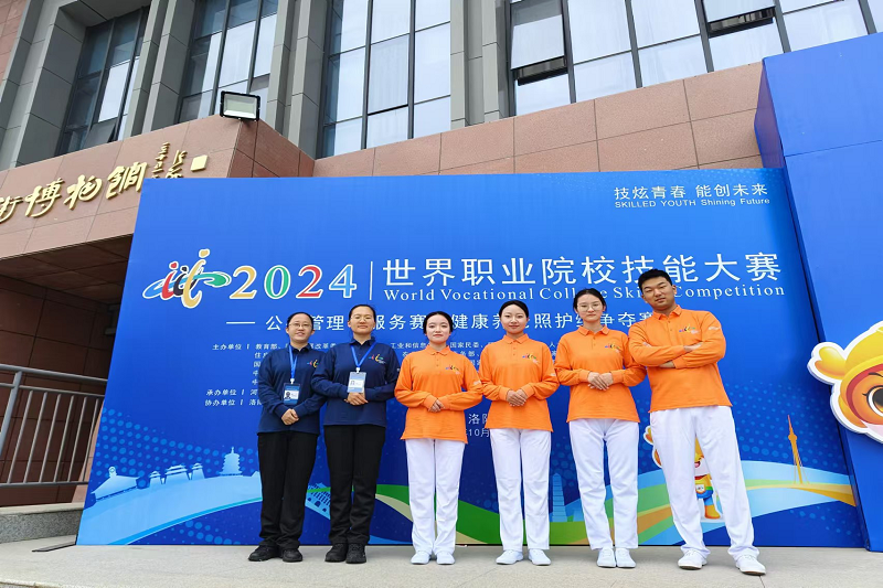 10月28日至11月1日,2024年世界职业院校技能大赛公共管理与服务赛道二“健康养老照护”赛项在洛阳职业技术学院举办。此次大赛共有来自31个省市自治区的60个参赛队参与竞争。由我校严长远领队,梅姣姣、谈笑两位指导老师指导的阮欣蕊、邱冰洁、郑佳妮、贠凯凡四位同学经过激烈角逐荣获铜奖。